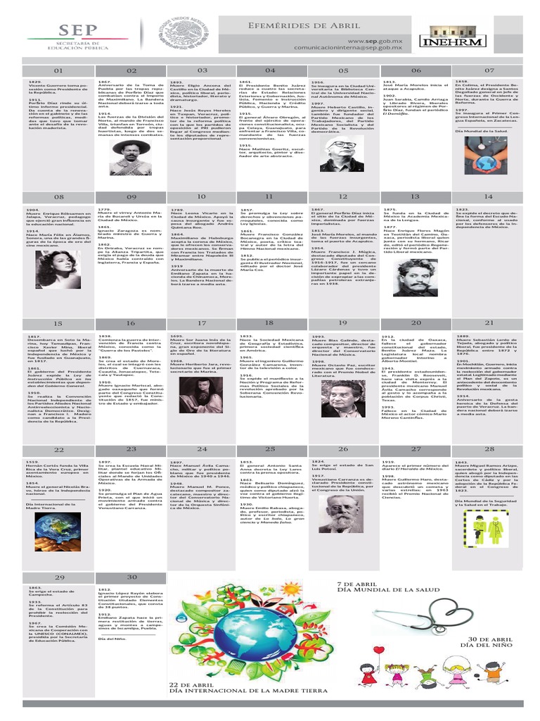 Efemérides de México mes a mes y día a día con toda la información de las efemérides y lo sucedido.